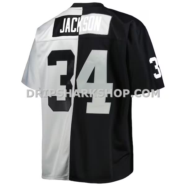 Mens Mitchell And Ness Bo Jackson Black Silver Las Vegas Raiders Big And Tall Split Legacy Retired Player Replica Jersey