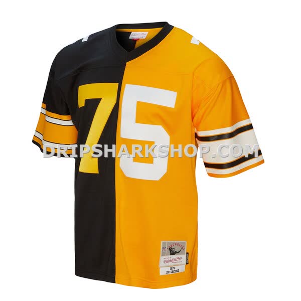 Mens Mitchell And Ness Joe Greene Black Gold Pittsburgh Steelers 1976 Split Legacy Replica Jersey Pi5003000