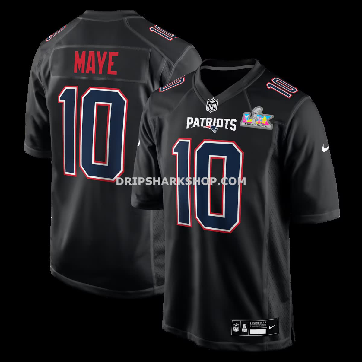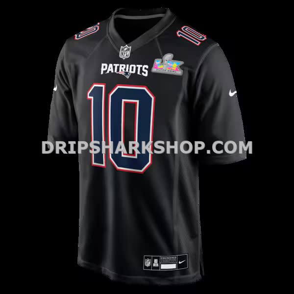 Mens Nike Drake Maye Black New England Patriots Super Bowl Lx Patch Carbon Fashion Game Jersey
