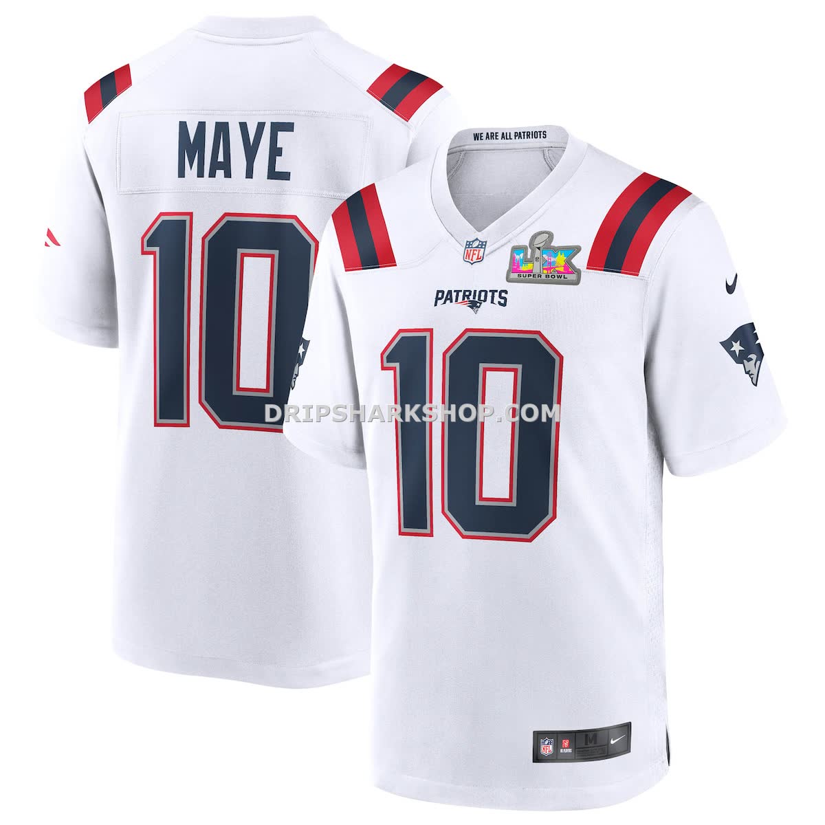 Mens Nike Drake Maye White New England Patriots Super Bowl Lx Patch Game Jersey