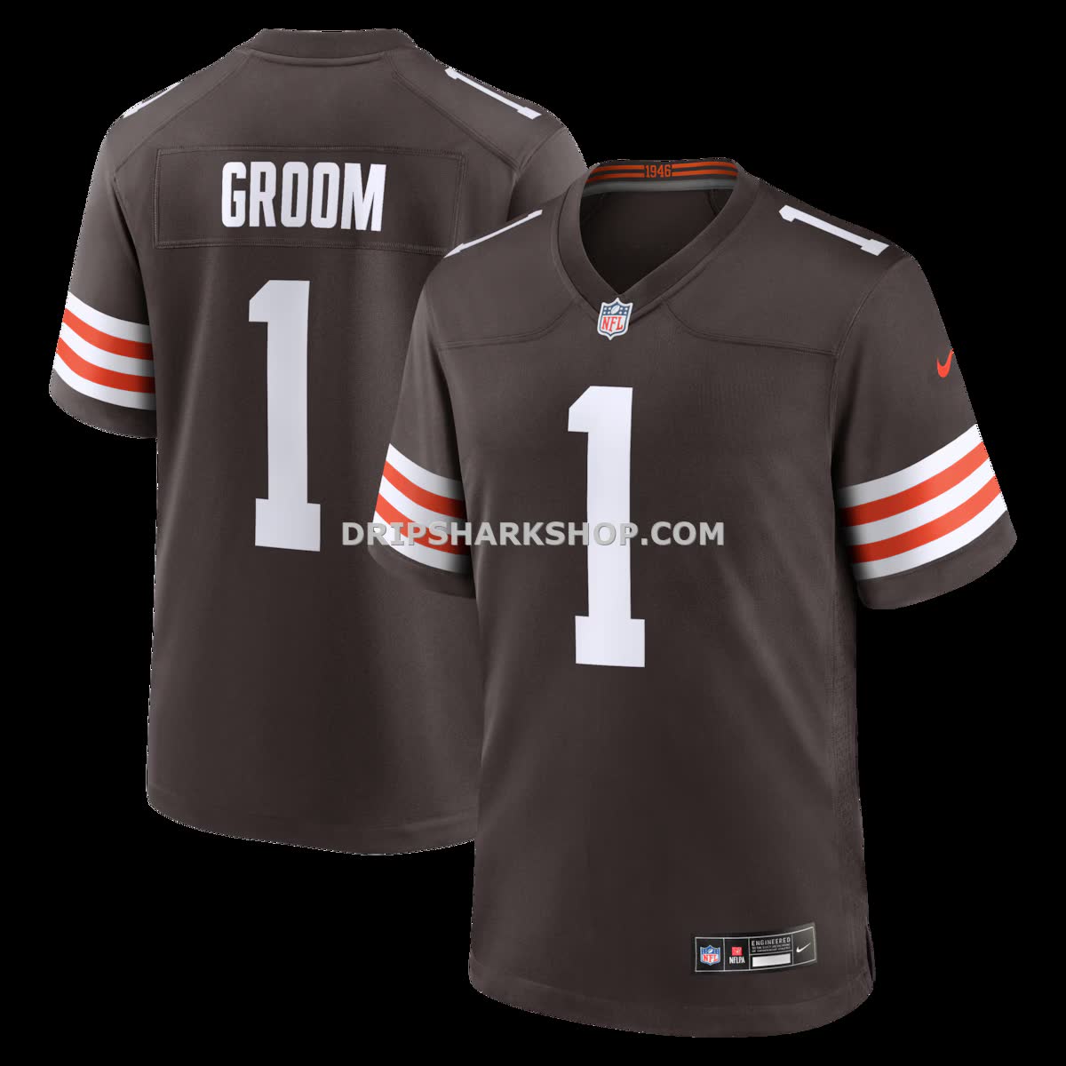 Mens Nike Number 1 Groom Brown Cleveland Browns Game Jersey